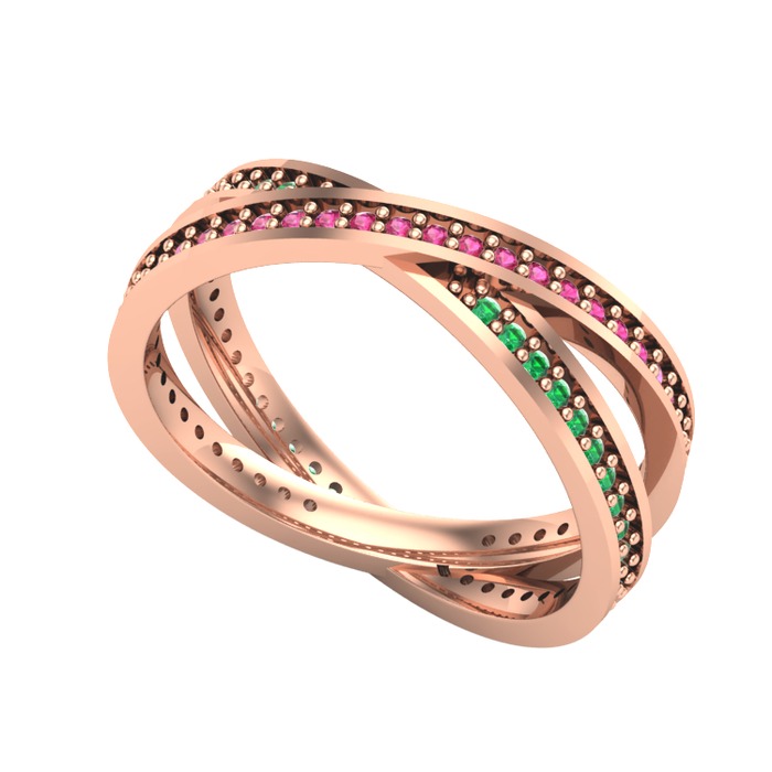 Rodolit garnet ve yeşil kuvars 14 ayar rose altın yüzük
