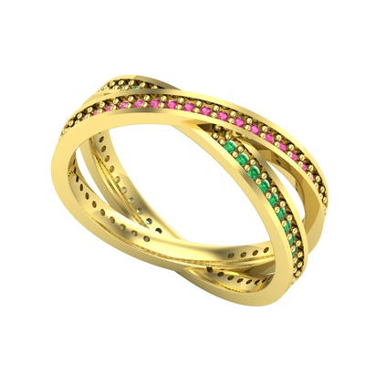 Rodolit garnet ve yeşil kuvars 8 ayar altın yüzük