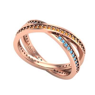 Sitrin ve akuamarin 8 ayar rose altın yüzük