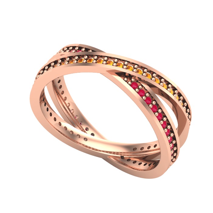 Sitrin ve kök yakut 18 ayar rose altın yüzük