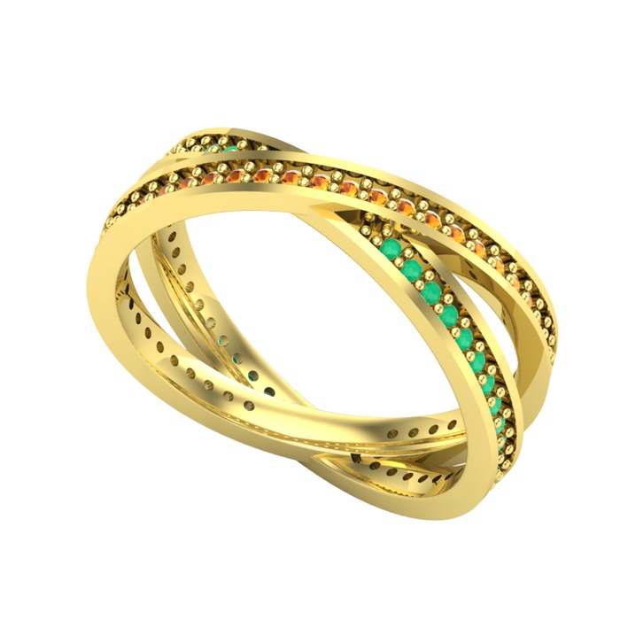 Sitrin ve kök zümrüt 14 ayar altın yüzük