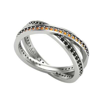 Sitrin ve siyah zirkon 18 ayar beyaz altın yüzük