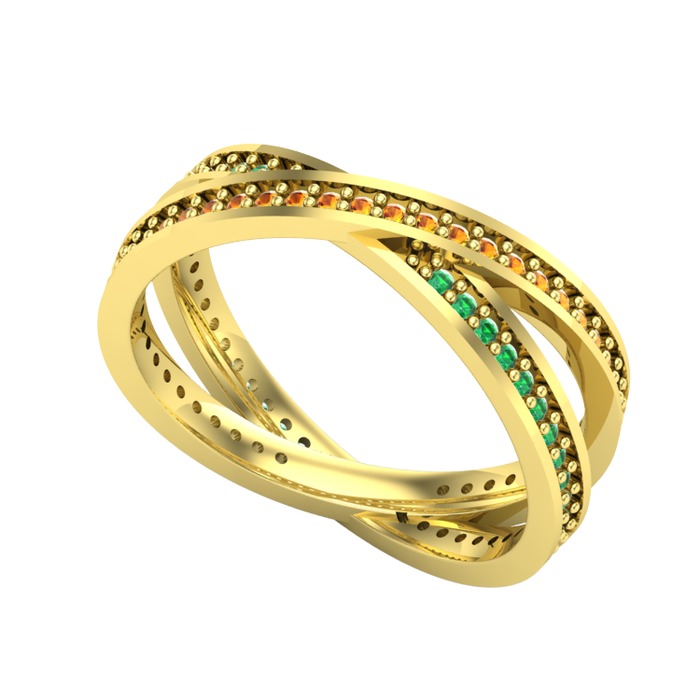 Sitrin ve yeşil kuvars 18 ayar altın yüzük