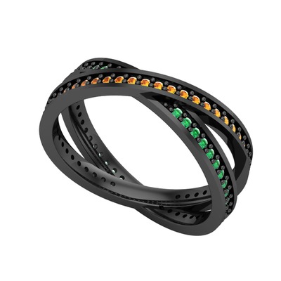 Sitrin ve yeşil kuvars 925 ayar siyah rodyum kaplama gümüş yüzük