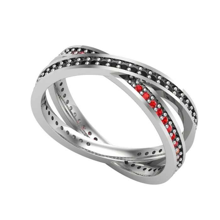 Siyah zirkon ve garnet 14 ayar beyaz altın yüzük