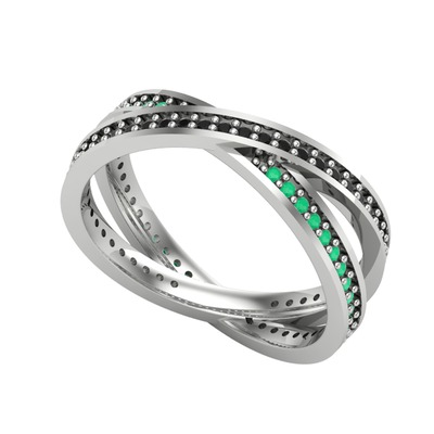 Siyah zirkon ve kök zümrüt 8 ayar beyaz altın yüzük
