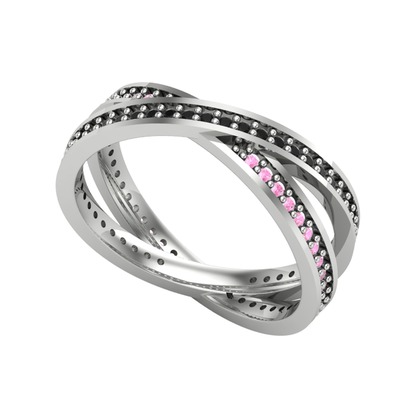 Siyah zirkon ve pembe kuvars 18 ayar beyaz altın yüzük