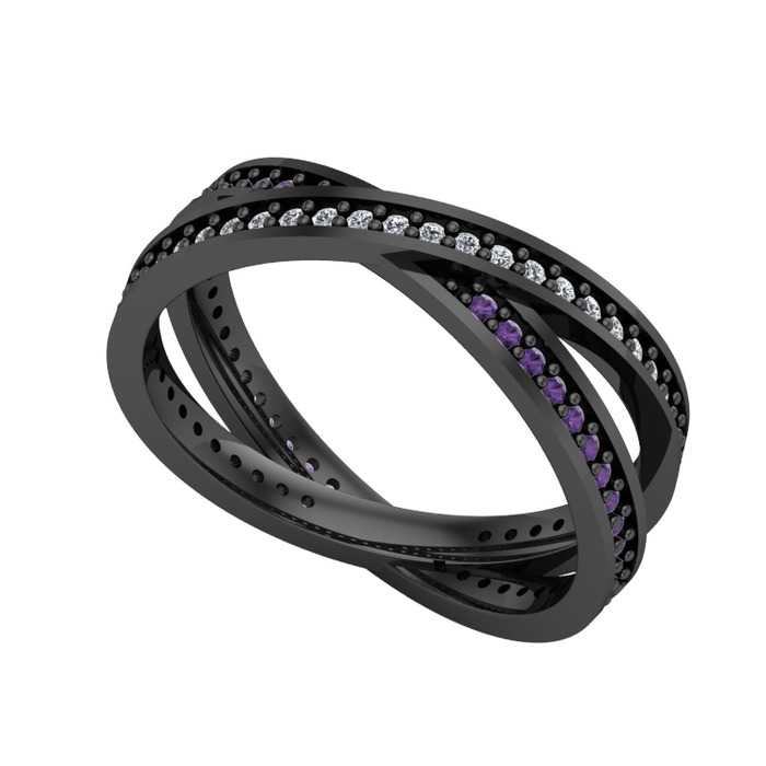 Swarovski ve ametist 925 ayar siyah rodyum kaplama gümüş yüzük