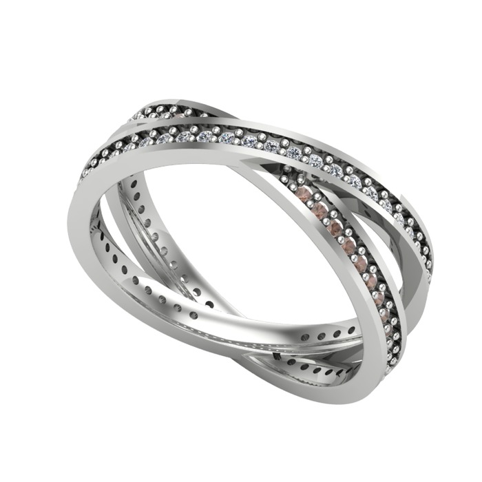 Swarovski ve dumanlı kuvars 14 ayar beyaz altın yüzük