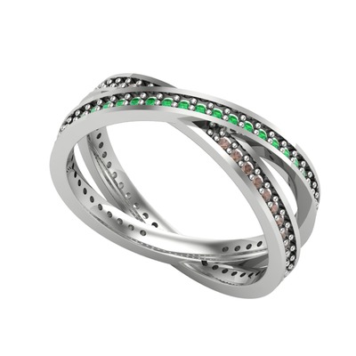 Yeşil kuvars ve dumanlı kuvars 14 ayar beyaz altın yüzük