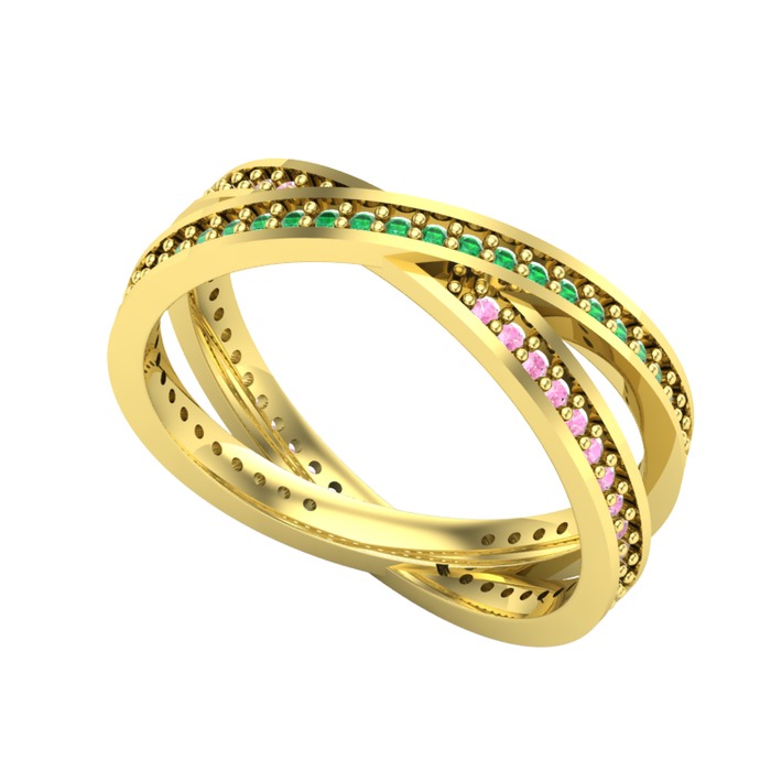 Yeşil kuvars ve pembe kuvars 14 ayar altın yüzük