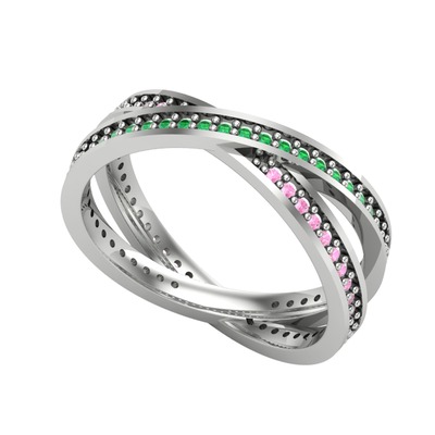 Yeşil kuvars ve pembe kuvars 925 ayar gümüş yüzük