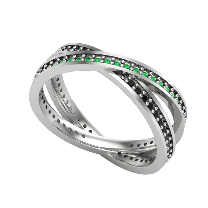 Yeşil kuvars ve siyah zirkon 8 ayar beyaz altın yüzük