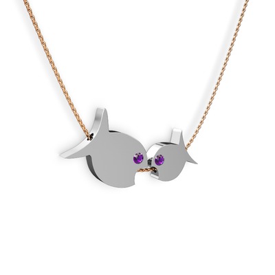 Ametist 14 ayar beyaz altın kolye (40 cm rose altın rolo zincir)