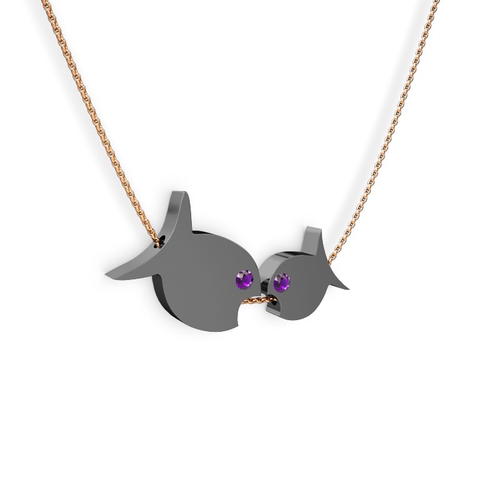 Ametist 925 ayar siyah rodyum kaplama gümüş kolye (40 cm rose altın rolo zincir)
