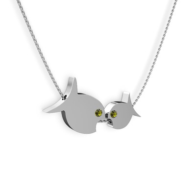 Peridot 18 ayar beyaz altın kolye (40 cm gümüş rolo zincir)