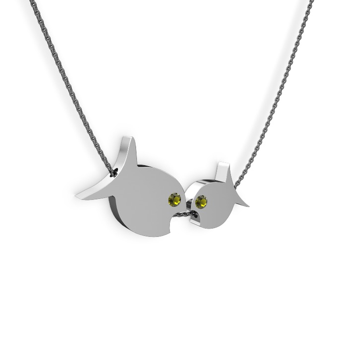 Peridot 8 ayar beyaz altın kolye (40 cm gümüş rolo zincir)
