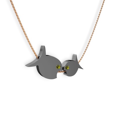 Peridot 925 ayar siyah rodyum kaplama gümüş kolye (40 cm rose altın rolo zincir)