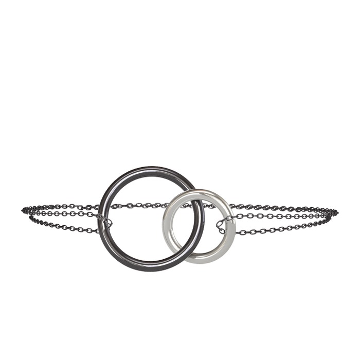 İkili Daire Bilezik - 925 ayar siyah rodyum kaplama gümüş bilezik (40 cm gümüş rolo zincir)