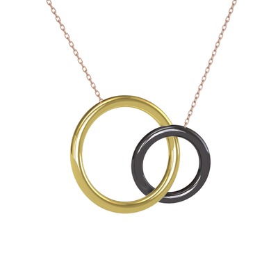 İkili Daire Kolye - 8 ayar altın kolye (40 cm rose altın rolo zincir)