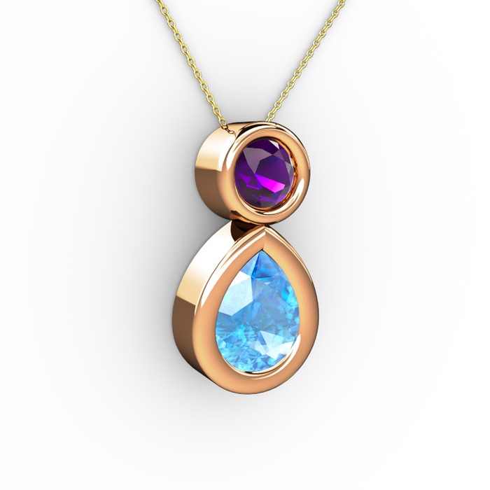 Akuamarin ve ametist 18 ayar rose altın kolye (40 cm altın rolo zincir)