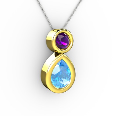 Akuamarin ve ametist 925 ayar altın kaplama gümüş kolye (40 cm beyaz altın rolo zincir)