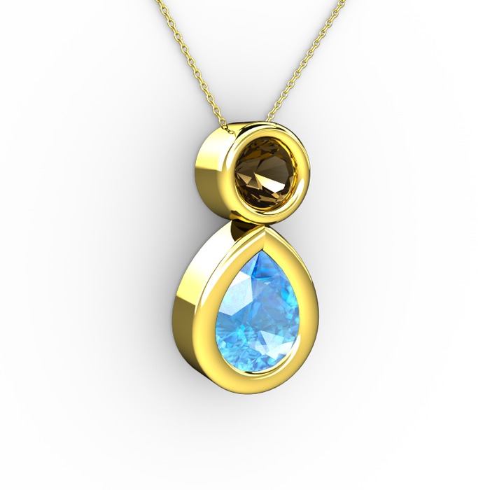Akuamarin ve dumanlı kuvars 8 ayar altın kolye (40 cm altın rolo zincir)