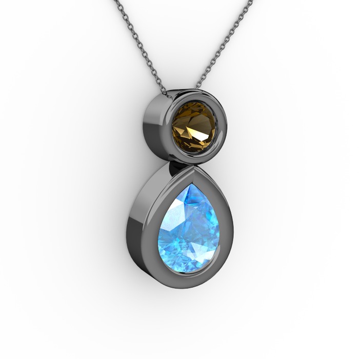Akuamarin ve dumanlı kuvars 925 ayar siyah rodyum kaplama gümüş kolye (40 cm gümüş rolo zincir)