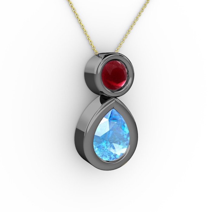 Akuamarin ve kök yakut 925 ayar siyah rodyum kaplama gümüş kolye (40 cm altın rolo zincir)