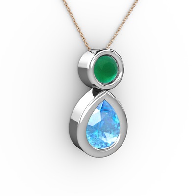 Akuamarin ve kök zümrüt 8 ayar beyaz altın kolye (40 cm rose altın rolo zincir)