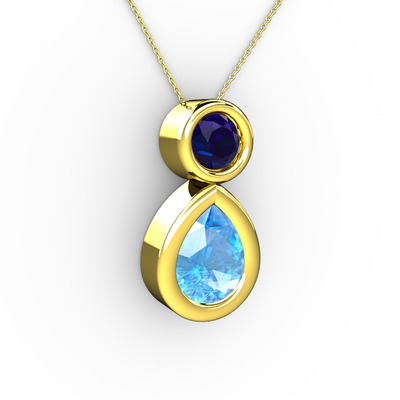 Akuamarin ve lab safir 18 ayar altın kolye (40 cm altın rolo zincir)