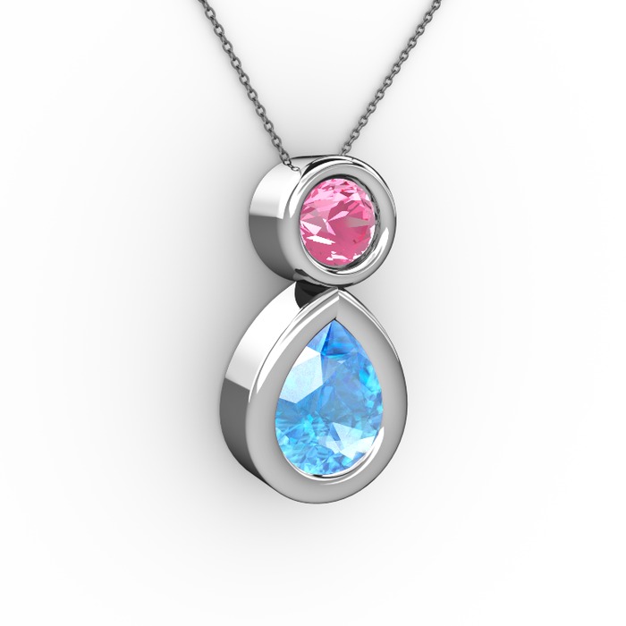 Akuamarin ve pembe kuvars 18 ayar beyaz altın kolye (40 cm gümüş rolo zincir)