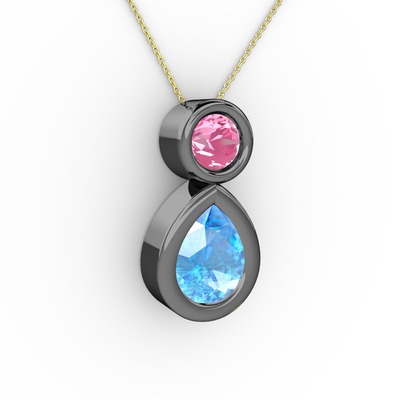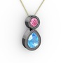 Akuamarin ve pembe kuvars 925 ayar siyah rodyum kaplama gümüş kolye (40 cm altın rolo zincir)