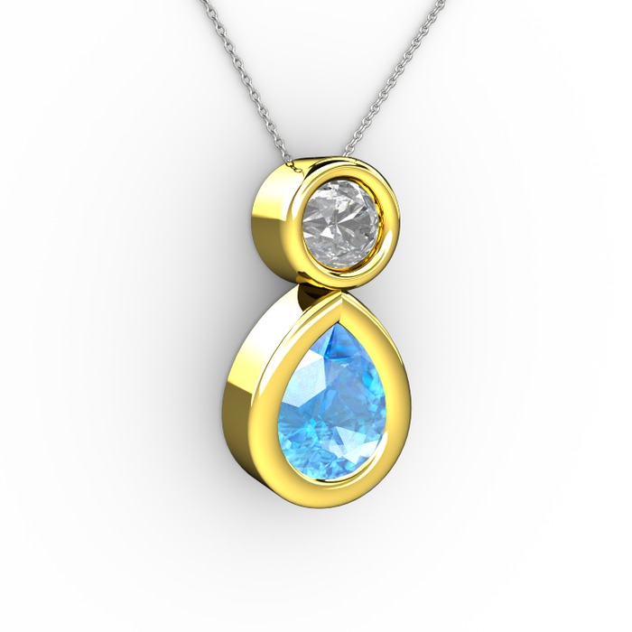 Akuamarin ve pırlanta 18 ayar altın kolye (0.5 karat, 40 cm beyaz altın rolo zincir)