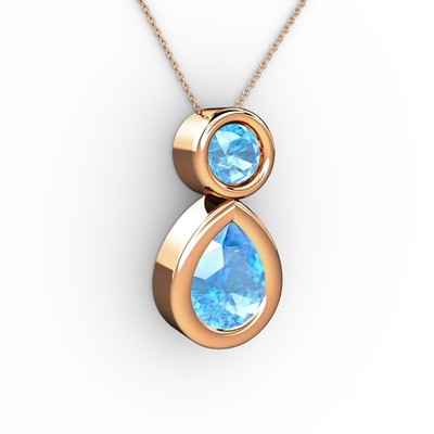 Akuamarin 925 ayar rose altın kaplama gümüş kolye (40 cm rose altın rolo zincir)