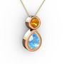 Akuamarin ve sitrin 14 ayar rose altın kolye (40 cm altın rolo zincir)