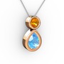 Akuamarin ve sitrin 18 ayar rose altın kolye (40 cm beyaz altın rolo zincir)