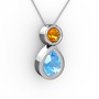 Akuamarin ve sitrin 8 ayar beyaz altın kolye (40 cm beyaz altın rolo zincir)