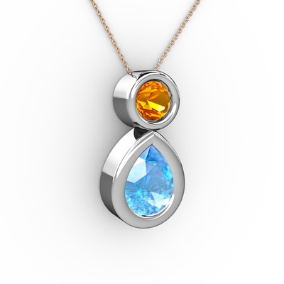 Akuamarin ve sitrin 925 ayar gümüş kolye (40 cm rose altın rolo zincir)