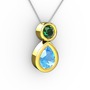 Akuamarin ve yeşil kuvars 8 ayar altın kolye (40 cm beyaz altın rolo zincir)