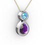 Ametist ve akuamarin 925 ayar gümüş kolye (40 cm altın rolo zincir)
