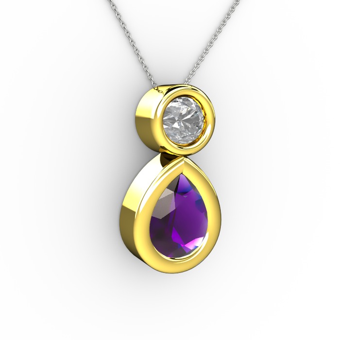Ametist ve beyaz zirkon 18 ayar altın kolye (40 cm beyaz altın rolo zincir)