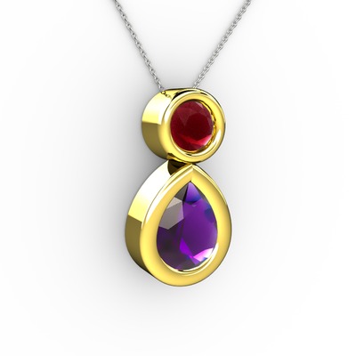 Ametist ve kök yakut 14 ayar altın kolye (40 cm beyaz altın rolo zincir)