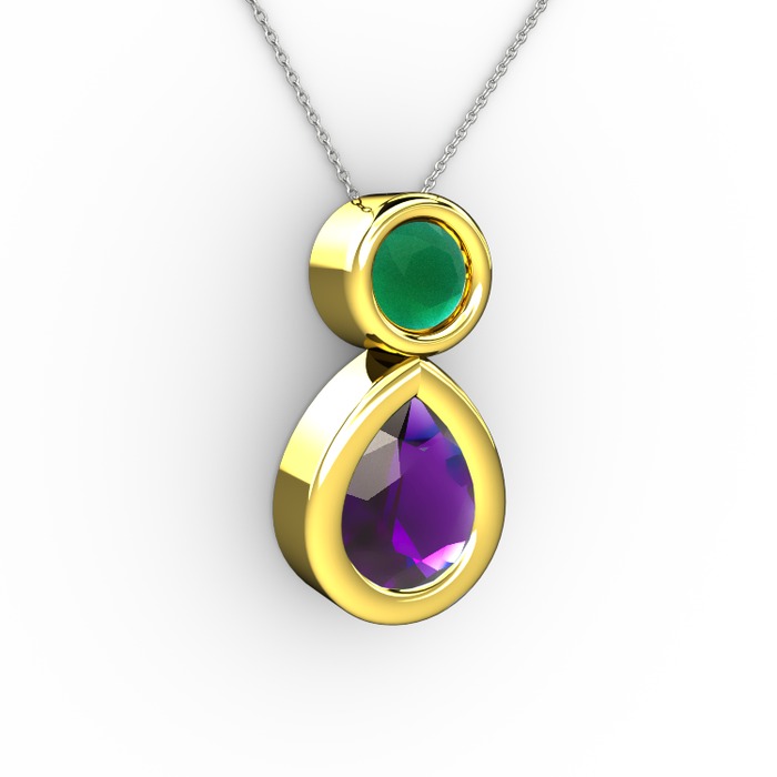 Ametist ve kök zümrüt 14 ayar altın kolye (40 cm gümüş rolo zincir)