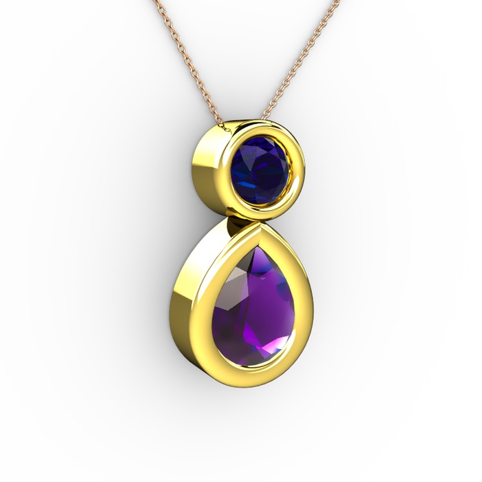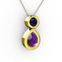 Ametist ve lab safir 18 ayar altın kolye (40 cm gümüş rolo zincir)