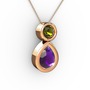 Ametist ve peridot 18 ayar rose altın kolye (40 cm gümüş rolo zincir)