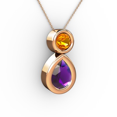Ametist ve sitrin 8 ayar rose altın kolye (40 cm rose altın rolo zincir)