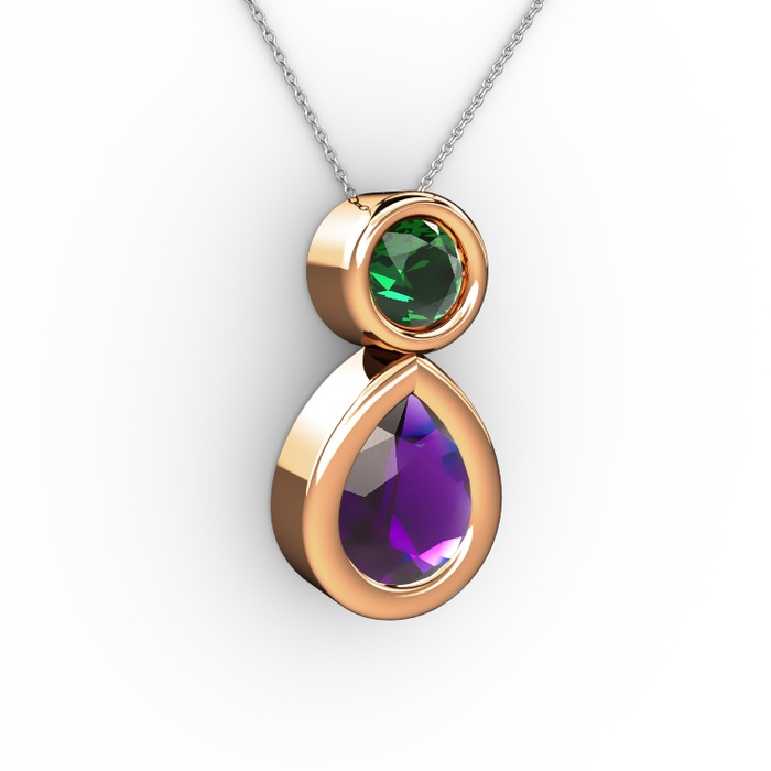 Ametist ve yeşil kuvars 18 ayar rose altın kolye (40 cm beyaz altın rolo zincir)