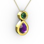 Ametist ve yeşil kuvars 925 ayar altın kaplama gümüş kolye (40 cm altın rolo zincir)