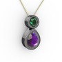 Ametist ve yeşil kuvars 925 ayar siyah rodyum kaplama gümüş kolye (40 cm altın rolo zincir)